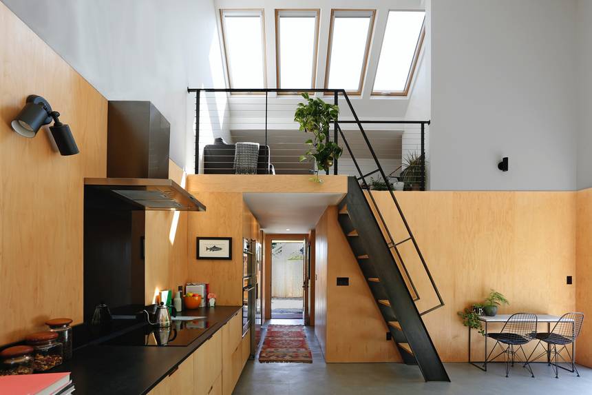 Les propriétaires du terrain où se trouve de la maison Alley Cat voulaient un endroit pour eux tout en louant leur maison de style artisanal en face. À Seattle, on l’appelle DADU, ou Detached Auxilary Dwelling Unit.