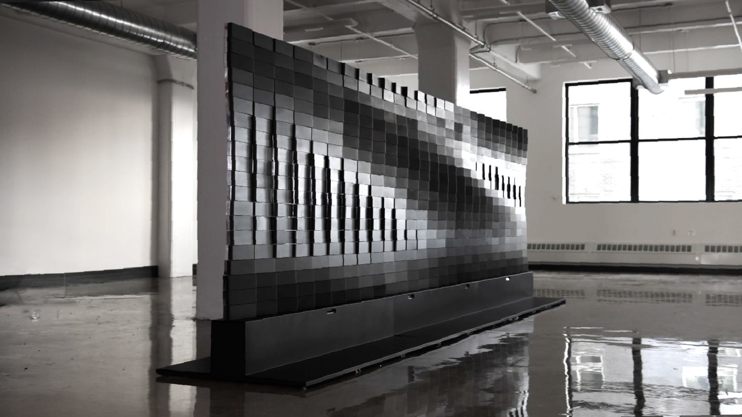 Pour mettre en valeur les merveilles de Brixel, Breakfast a créé Brixel Mirror, une installation de 16 x 9 pieds composée de 540 pièces noires et réfléchissantes. Lorsque les rectangles tournent, ils créent un effet chatoyant avant d’afficher le mot BRIXEL.