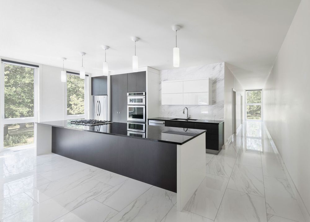 En plus de cette étonnante construction, la maison propose aussi un garage, une piscine intérieure, une salle de séjour, une cuisine et deux chambres d’enfants. Personnellement, j’adore l’intérieur de cette maison. Le blanc est la couleur dominante et contraste bien avec le bois sombre que l’on trouve dans certaines pièces de la maison et notamment dans la cuisine. L’opposition avec le marbre est juste magnifique.