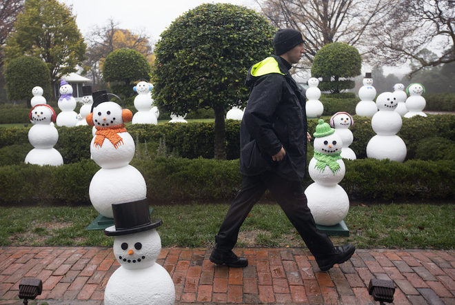 Comme le note la critique mode du New York Times, Vanessa Friedman, Carolina Herrera a choisi des tons bleu marine à carreaux pour la China Room. Dans la Vermeil Room, Duro Olowu a choisi un tissu africain, des miniatures italiennes, et d’antiques poupées françaises. Carol Lim et Humberto Leon ont quant à eux choisi de créer une ambiance littéraire avec des manuscrits et des livres. Bien évidement, les couloirs, la Red Room, la Blue Room et d’autres espaces de la Maison Blanche ont également été décorés pour les fêtes de fin d’année. Même Bo, le chien de la Maison Blanche est représenté dans un des décors. A l’extérieur, 56 bonhommes de neige ont été installés pour représenter les 56 États des États-Unis.