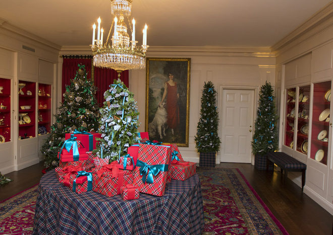 Les décorations de Noël de la Maison Blanche ont principalement été installées dans les trois salles publiques du rez de chaussée. Carolina Herrera, Duro Olowu, le duo Carol Lim et Humberto Leon et même Kenzo ont été chargés de la décoration de la China Room, de la Vermeil Room, et de la bibliothèque du rez-de-chaussée. Michelle Obama les a tout naturellement choisi car elle aime habituellement porter leurs vêtements.