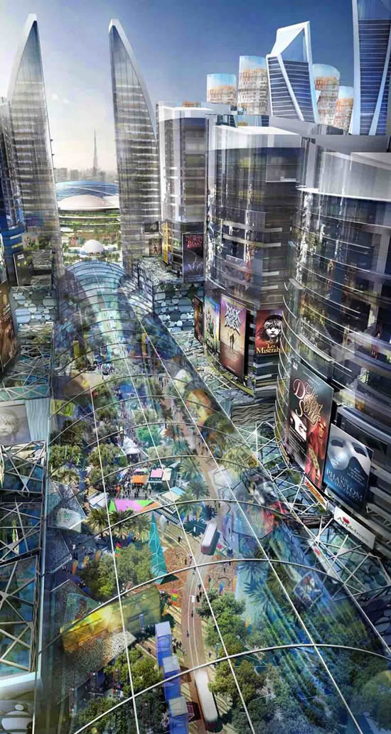 Les dirigeants de l’émirat sont en train d’imaginer une « ville dans la ville » climatisée contenant le plus grand centre commercial de la planète, un parc à thème, des théâtres dans le style de ceux de Broadway, 100 hôtels et des lacs avec des navires et des cascades. Le Mall of the World couvrira donc 743 000 m², quatre fois la taille du MetroCentre à Gateshead, le plus grand centre commercial au Royaume-Uni.