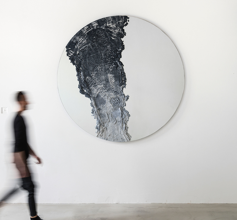 Dans cette collection, nous retrouvons une table basse, un canapé, une table, un miroir, une table de chevet, etc. Les finitions de ces meubles sont absolument exceptionnelles. Le canapé en sable et ciment est recouvert de velours de soie et la table basse et la table de chevet se déclinent en bleu et en rose. Utilisant du sable teint à la main, de la poudre de verre, des miroirs et du ciment, Fernando Mastrangelo a juxtaposé des éléments méticuleusement conçus et polis.