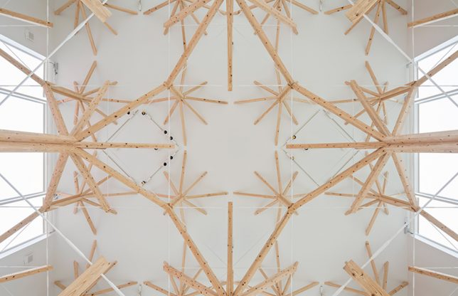 Fractal Chapel est une église d’un nouveau genre puisque composée d’une série de supports empilés ressemblant à des arbres et créant une petite forêt géométrique à l’intérieur de cet espace par ailleurs minimaliste.