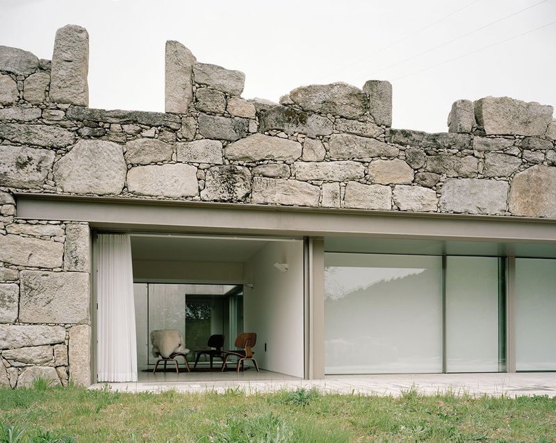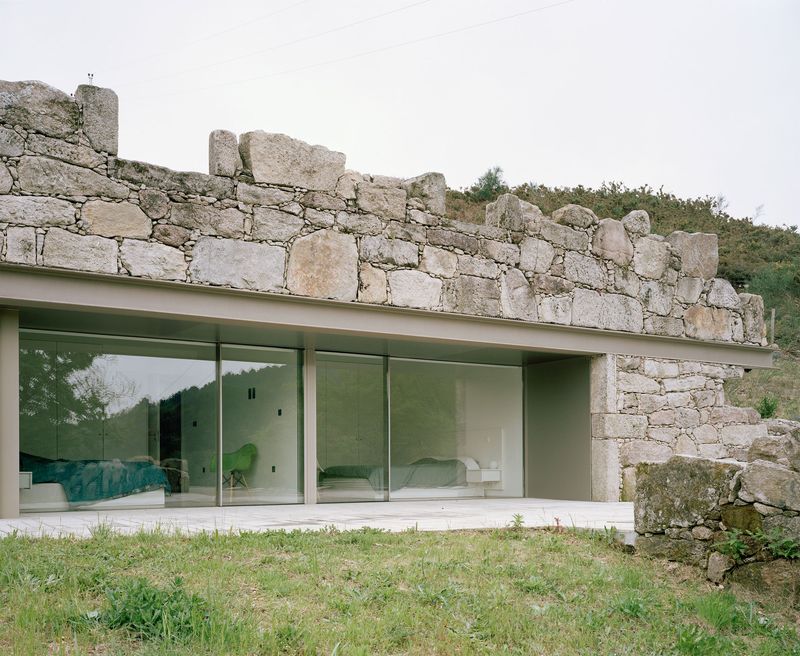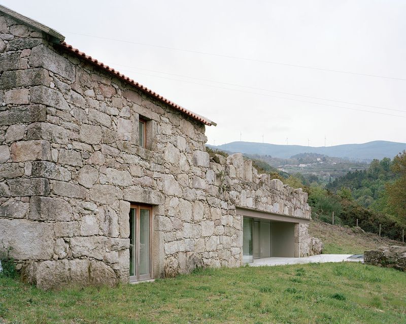 Cette maison contemporaine en pierre est située à Melgaço dans le nord du Portugal. Deux maisons pierres de granit en ruines ont été réunies afin d’obtenir cet espace totalement atypique. La première faisait deux étages et la seconde, un bâtiment voisin totalement démoli, a permis de créer une dépendance.