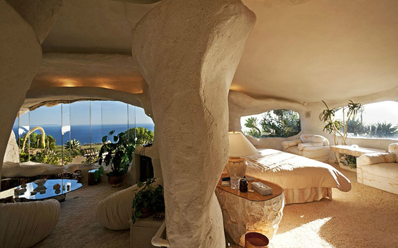 Construite dans les collines de Malibu, elle a été entièrement taillée dans la roche afin de ne pas perturber la beauté naturelle de la région. Cette demeure à flanc de colline est sans aucun doute une propriété unique. La maison dispose d’une chambre à coucher, de deux salles de bains, le tout sur une surafce de 762 mètres carrés.  Voux pourrez voir sur les photos avec quel soin des détails Dick Clark a créé cette maison pour le moins inhabituelle.