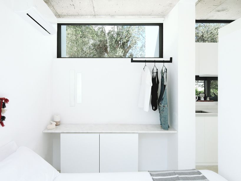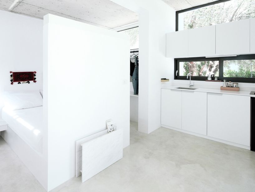 Conçue par Mandalaki, un studio de design basé à Milan, la minuscule maison mesure 26 mètres carrés, et est facile à assembler, grâce à ses panneaux de béton modulaires qui composent ses murs. Tout à l’intérieur est également spécifiquement conçu pour maximiser l’espace avec des meubles sur mesure. A l’intérieur, il n’y a que deux pièces. On y découvre un lit encastré, des armoires de cuisine et une console, ainsi qu’un espace de rangement. Bref, le strict minimum.
