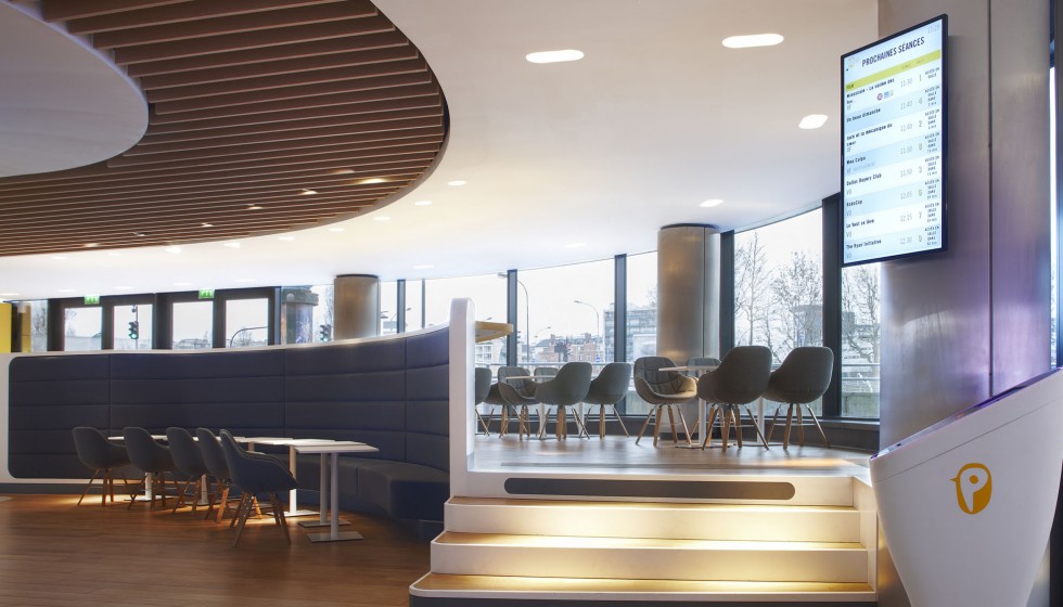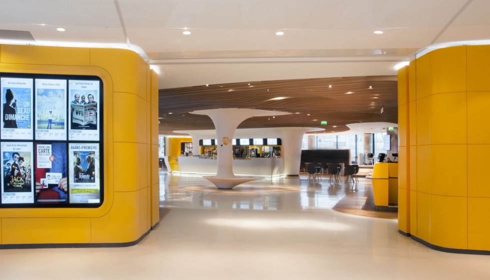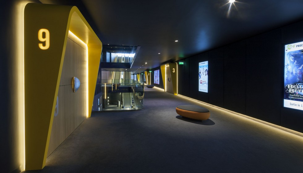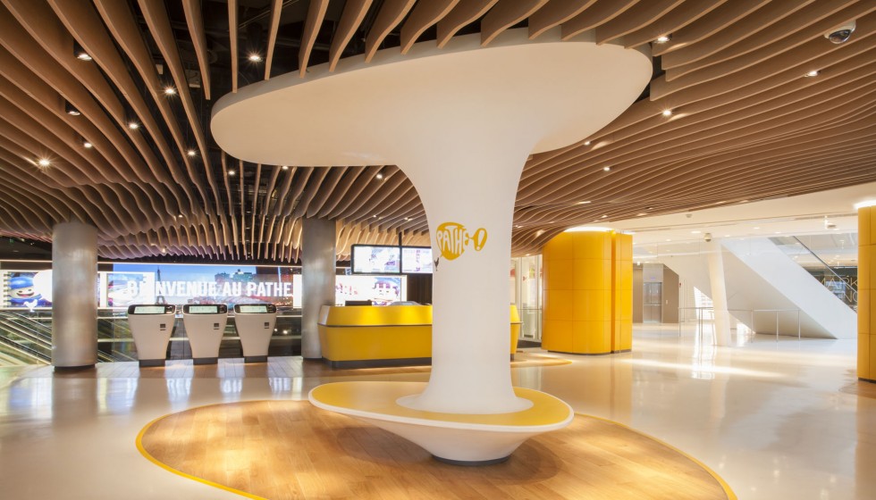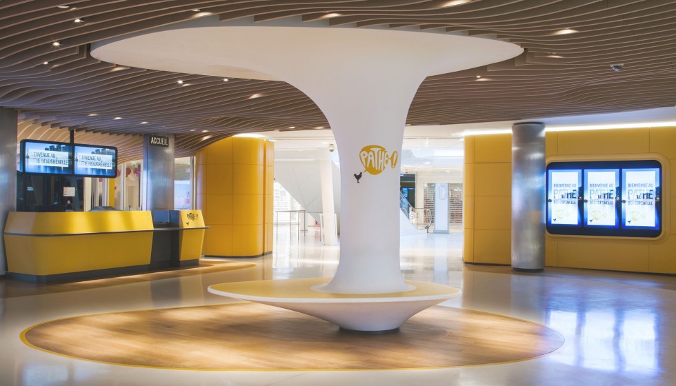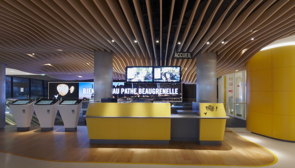 « Les cinémas Pathé imaginés par Ora-ïto vous invitent en zone d’embarquement. Sans valise mais l’esprit tourné vers l’horizon, le spectateur est accueilli dans un espace conçu comme un aéroport du futur. Comptoirs et bornes de billetterie, aires d’attente et de détente, contrôle des billets puis accès aux salles obscures… Tout concourre au plaisir, à la relaxation et à l’excitation. »
