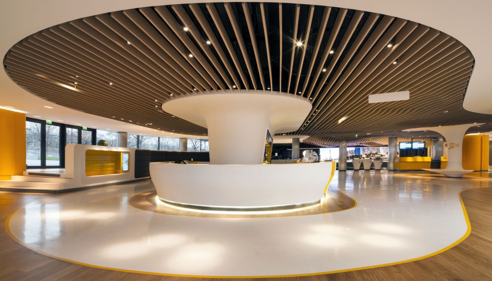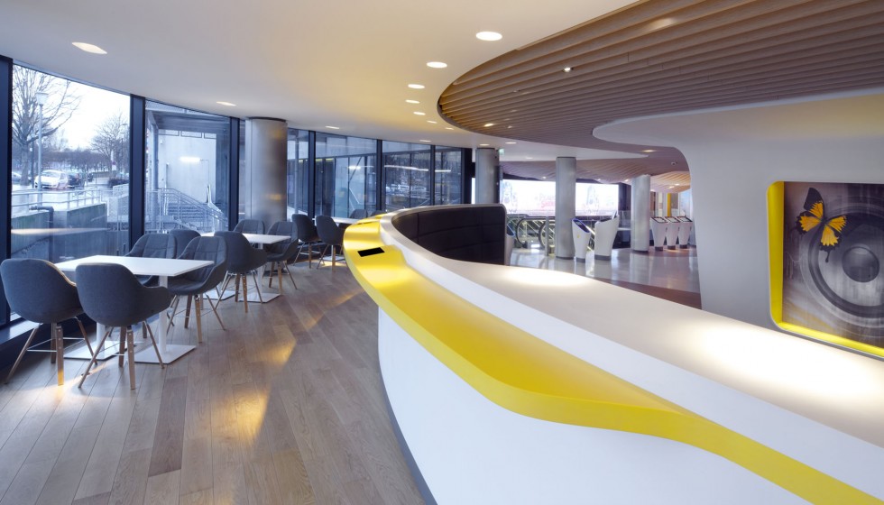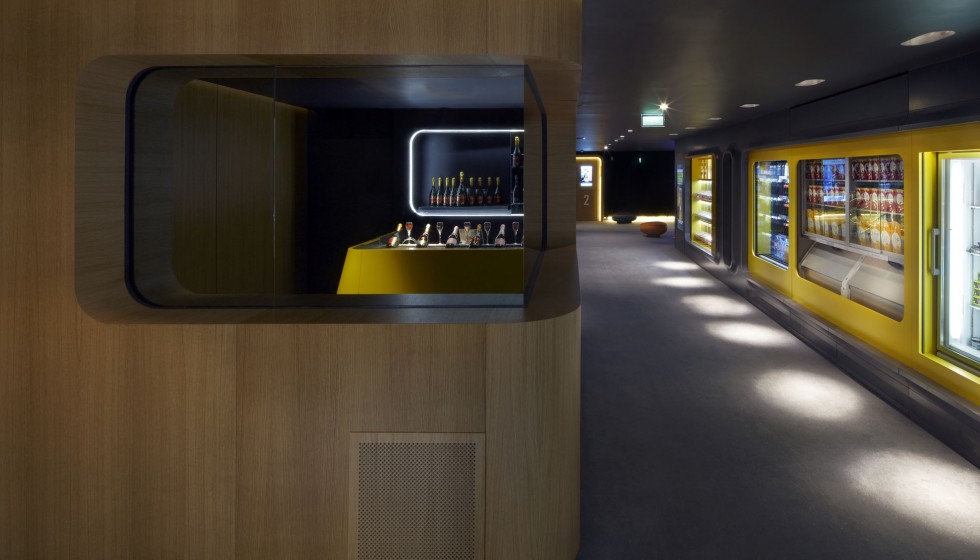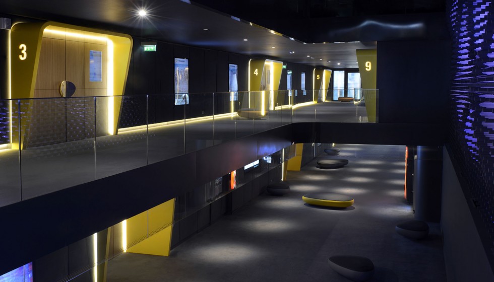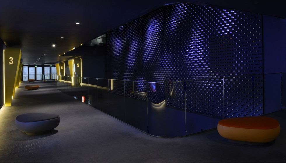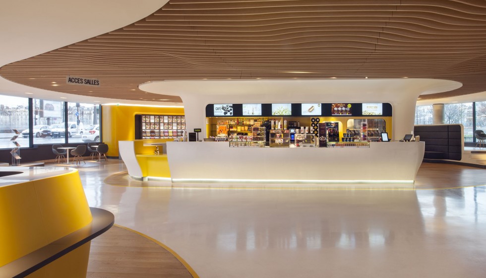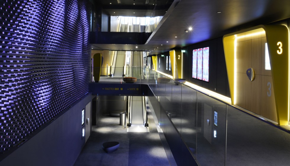 « Les cinémas Pathé imaginés par Ora-ïto vous invitent en zone d’embarquement. Sans valise mais l’esprit tourné vers l’horizon, le spectateur est accueilli dans un espace conçu comme un aéroport du futur. Comptoirs et bornes de billetterie, aires d’attente et de détente, contrôle des billets puis accès aux salles obscures… Tout concourre au plaisir, à la relaxation et à l’excitation. »