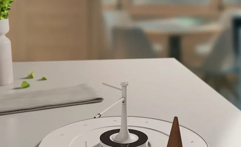 Le réveil est conçu comme un réveil universel qui s’adapte à un matin silencieux et à des fonctions minimales pour éviter toute confusion. Il offre un style moderne pour un matin paisible avec plusieurs éléments qui permettent une utilisation intuitive. Réglez l’alarme en plaçant le cône d’encens sur une assiette, une fois que l’aiguille des heures, qui sert également d’allume-feu, se déplace à l’heure précise du réveil, elle enflamme l’encens pour répandre le parfum et dire à votre corps de se réveiller.