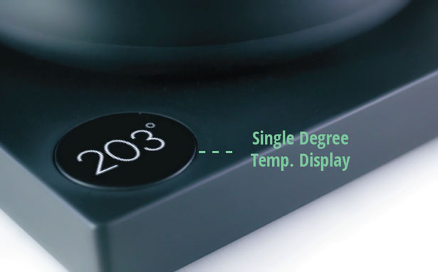 Le modèle de la gamme au dessus, le Stagg EKG +, propose également une fonctionnalité connectée qui permet de contrôler la bouilloire depuis son téléphone en Bluetooth. Idéal pour les vrais nerds à la recherche de ce type de produits. Comme je vous le disais, cette cafetière dispose d’un bouton de contrôle de la température. Il vous sera donc possible de la faire varier de 135 degrés à 212 degrés ; la bouilloire fera le reste. Pour être certain de la température sectionnée, il vous suffira de jeter un petit coup d’œil à l’écran LCD dont est équipée la bouilloire.