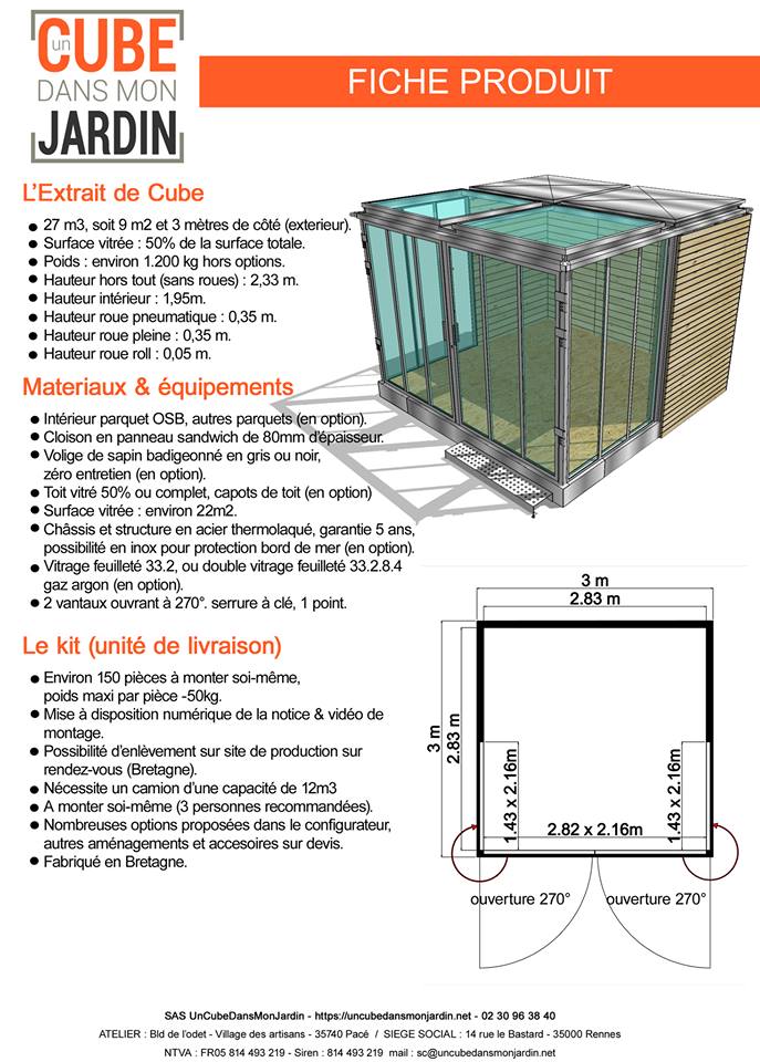 Bref, vous l’aurez compris, l’excellente idée qu’a eu Frédéric Tabary vous permet d’agrandir votre lieu de vie sans vous lancer dans de longs, incertains et coûteux travaux. A la fin de la lecture cette phrase, vous vous demandez surement combien peut coûter ce fameux cube … Et bien sachez que le Cube est proposé à partir de 14 490 euros. Faites le calcul, vous verrez que ce tarif est tout à fait intéressant par-rapport à ce que vous coûteraient les travaux pour réaliser une extension à votre maison.