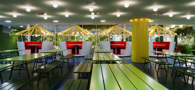 Les entreprises suédoises Anki Gneib et Adolfsson & Partners ont travaillé ensemble pour créer ces bureaux extravagants basés sur l’expérience de jeu et composés de 430 postes de travail et 42 salles de réunion. On y trouve même une salle de réunion « astro-gazonnée » !