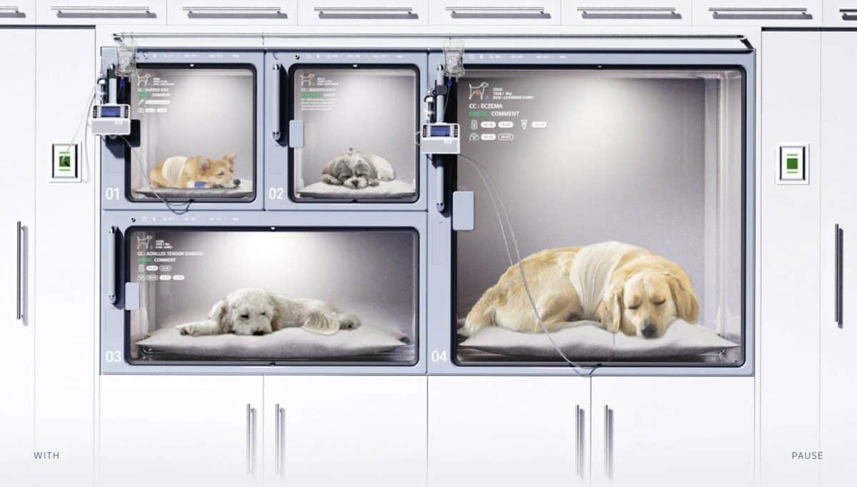 Le concept repose sur l’idée que les animaux hospitalisés ont besoin de calme, de repos et d’un environnement apaisant pour guérir, exactement comme les humains. Sauf qu’à la différence de nous, ils ne comprennent pas pourquoi ils sont là, pourquoi ça fait mal et pourquoi leurs humains ne sont pas avec eux. L’angoisse est décuplée, et un environnement hostile ralentit la guérison. PAUSE essaie de résoudre ce problème en créant des espaces où l’animal se sent en sécurité plutôt que terrorisé.