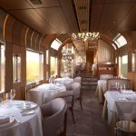 Mais revenons-en à notre train de luxe. À l’intérieur, les cadres de fenêtres à ramification ont été imaginés pour évoquer et suggérer des forêts bordées d’arbres. Les géométries de la fenêtre à l’extérieur reflètent les différents besoins des espaces intérieurs ; les salles communes, les salles de restaurant et les compartiments couchette à deux niveaux. Rien n’a été laissé au hasard, le moindre matériau a été choisi avec soin pour offrir le maximum de confort aux passagers, quel que soit le compartiment où ils se trouvent.