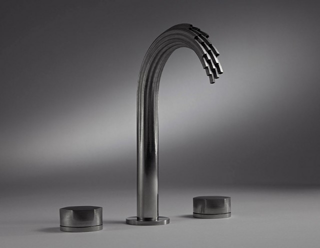 Les deux autres robinets sont axés sur le fait de réinventer la façon dont l’eau est amenée à l’utilisateur. Grâce à la haute résistance de l’alliage, voies cachées sont cachés à l’intérieur et convergent au sommet. L’eau apparaît alors comme par magie. Sachez que ces robinets ne sont pas des concepts mais bien des produits qui seront vendu d’ici 12 mois.