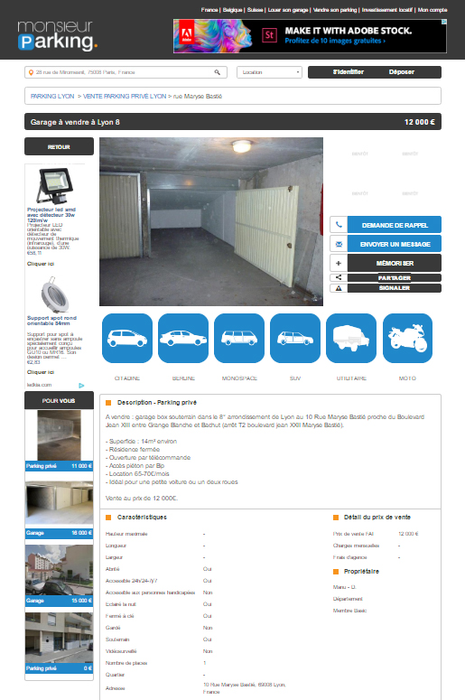 Alors oui, le site a envoyé des messages à cet utilisateur ; 23 pour être précis. Mais pourquoi ne pas l’appeler ou désactiver temporairement l’annonce et proposer à l’utilisateur de la réactiver ? Cette logique serait sans doute plus pertinente et professionnelle. C’est d’ailleurs celle utilisée par d’autres sites de petites annonces. Que ce soit pour de la vente ou de la location de parking ou de garage le site devrait prévoir ces cas de figure. Si cette règle est clairement énoncée au départ, cela ne devrait pas « froisser les annonceurs« .
