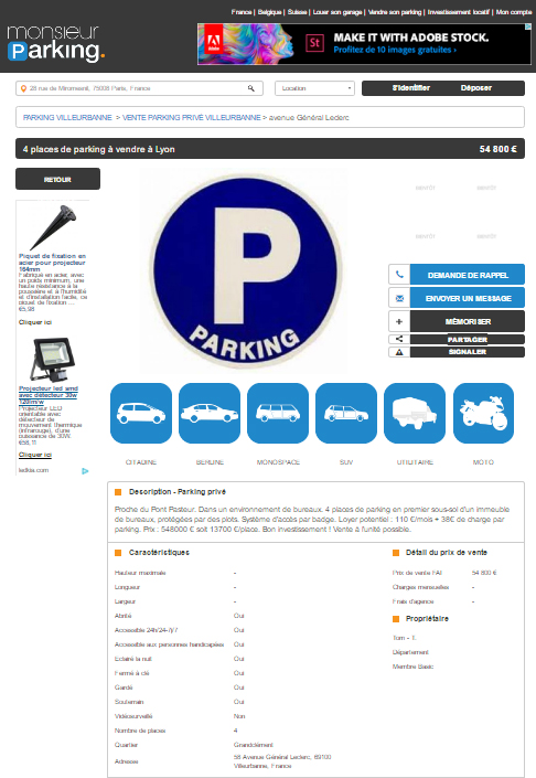 Avant de recontacter Charles GERARD, j’ai décidé de tenter à nouveau ma chance. J’ai donc sélectionné sept autres annonces pour des parkings à vendre et pour lesquelles j’ai fait les mêmes vérifications. Mais pas de chance !