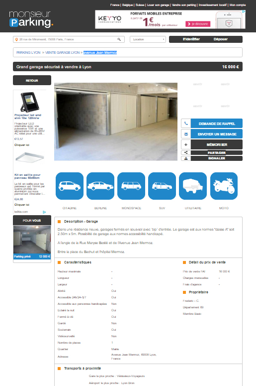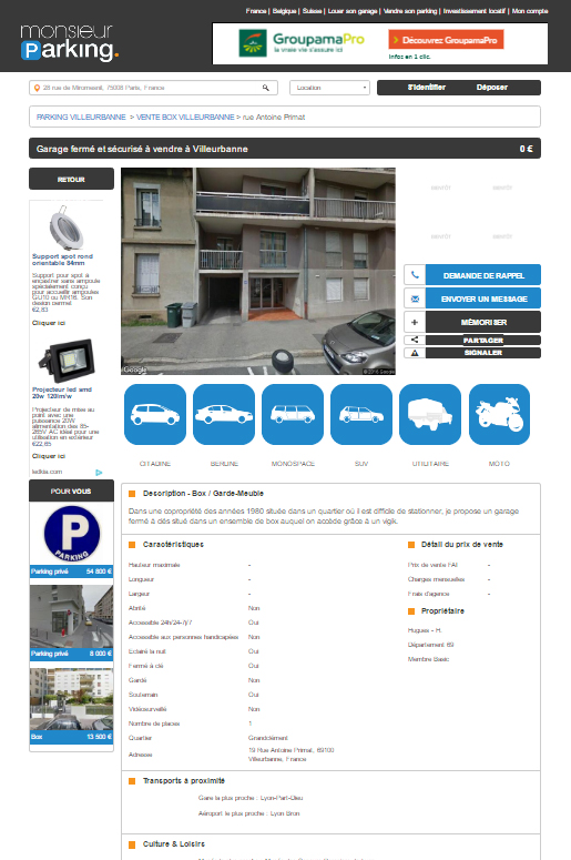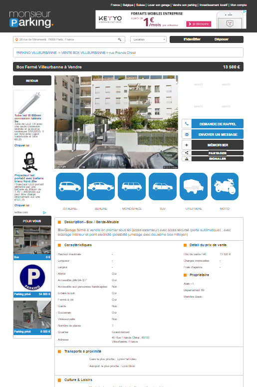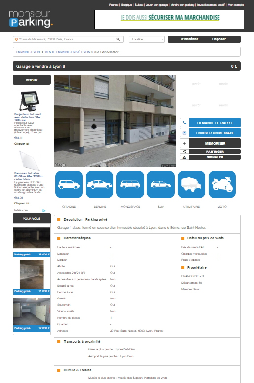 Mon avis sur le site Monsieur Parking peut vous paraître dur mais je vais vous expliquer ce qu’il s’est passé. Un peu échaudé par mon expérience avec ce site, j’ai décidé de mener ma petite enquête. Tout commence le 25 Octobre 2016. A la recherche d’un parking ou d’un box, à proximité de chez moi pour y garer ma voiture, je décide de consulter quelques annonces sur des sites comme Le Bon Coin, Orpi, Paru Vendu, etc. Dans la liste des résultats fournis par Google se trouve le site Monsieur Parking.