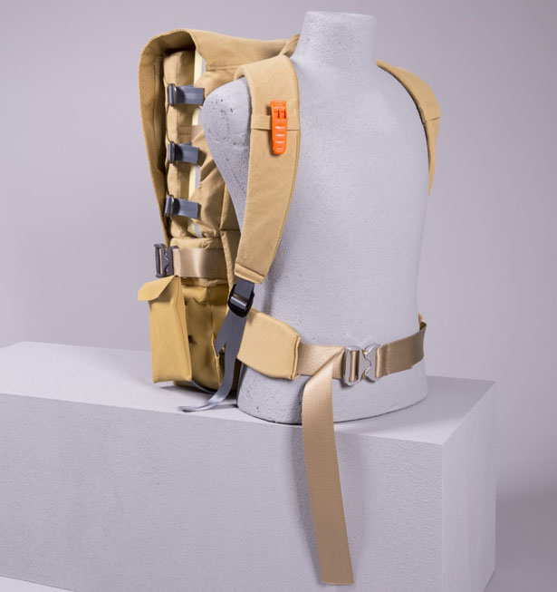 Le sac à dos est fait d’eau et de fibres d’aramides ignifuges, les mêmes matériaux que nous retrouvons couramment dans les combinaisons de protection incendie. Pour le processus de développement, Joris de Groot a fait équipe avec Ten Cate, un leader mondial dans la production de tissus protecteurs. Cette station de radio serait en mesure de diffuser une émission en direct à tout moment et n’importe où, en particulier en cas de catastrophe naturelle.