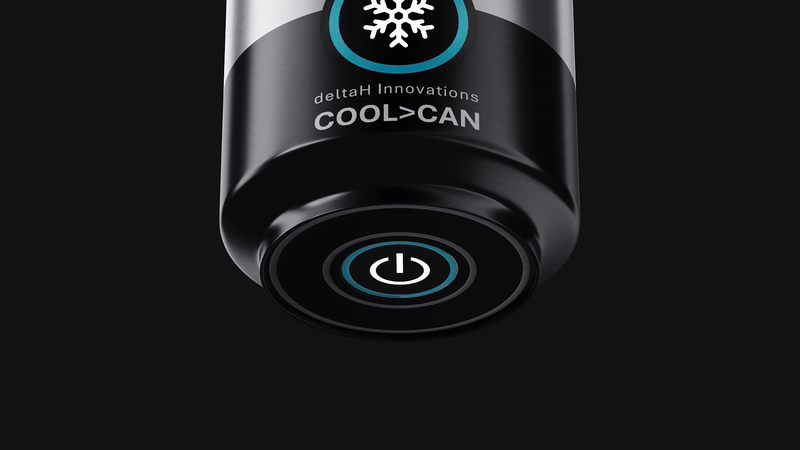 Conçue par deltaH Innovations, Cool Can permet de refroidir les boissons de 22 à 6 °C. L’eau contenue dans la base est séparée de la boisson contenue dans le contenant : vous pouvez être tranquille, car les sels qui déclenchent le refroidissement ne se mélangent pas à votre boisson. Ce symbole de flocon de neige informe l’utilisateur lorsque l’auto-refroidissement est en cours, il devient bleu en hommage à l’icône de l’hiver.