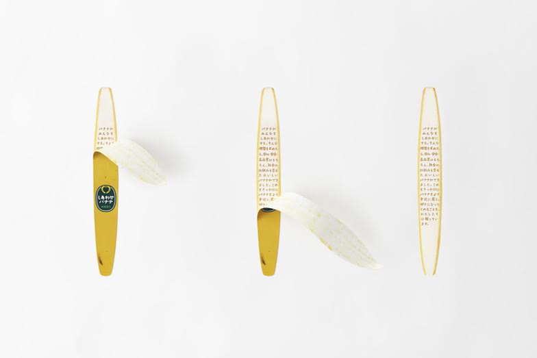 Nendo a donc imaginé un emballage qui ne serait pas extravagant ; puisque la star c’est le produit. Etant donné que c’est un produit écologique, il ne voulait pas non plus créer une boite ou un emballage et a donc imaginé un autocollant à placer sur la surface de la peau de banane.