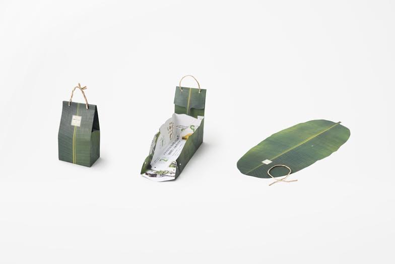 En plus de l’autocollant, Akihiro Yoshida a conçu un sac en papier pour permettre aux personnes qui ont acheté les bananes de ramener simplement à la maison. Le sac est conçu de telle sorte que lorsque l’on retire la poignée il est simple de choisir la banane que l’on veut manger. Petit détail, une fois déplié, on se rend compte que le sac imite à la perfection une feuille de bananier.
