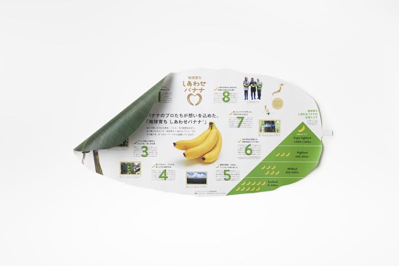 Nendo emballe donc les bananes Shiawase, des bananes de haute qualité cultivées dans une plantation dans un parc national situé dans la région centre-nord de l’île de Mindanao aux Philippines à une altitude de 1000 mètres ou plus.