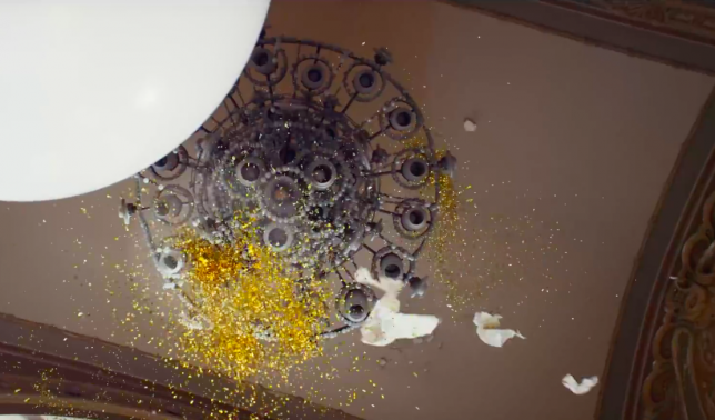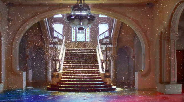Ce casino roumain abandonné a été choisi comme lieu de tournage pour faire la promotion de la nouvelle gamme de téléviseurs BRAVIA 4K HDR de la marque. Le tout a été tourné en 4K, capturant chaque petit morceau de paillettes lors de l’explosion des ballons. Les ballons avaient été installés un peu de partout dans l’édifice : du sol au plafond. Il y en avait aussi a proximité des fenêtres afin de diffuser des paillettes de l’intérieur de l’ancien bâtiment abandonné vers l’extérieur. Plus de 4000 ballons et 1500 kilos de paillettes ont été nécessaires pour parvenir à ce résultat. Je n’ose même pas imaginer le nombre de personne et le nombre d’heures qui ont été nécessaires pour tout nettoyer après le tournage !