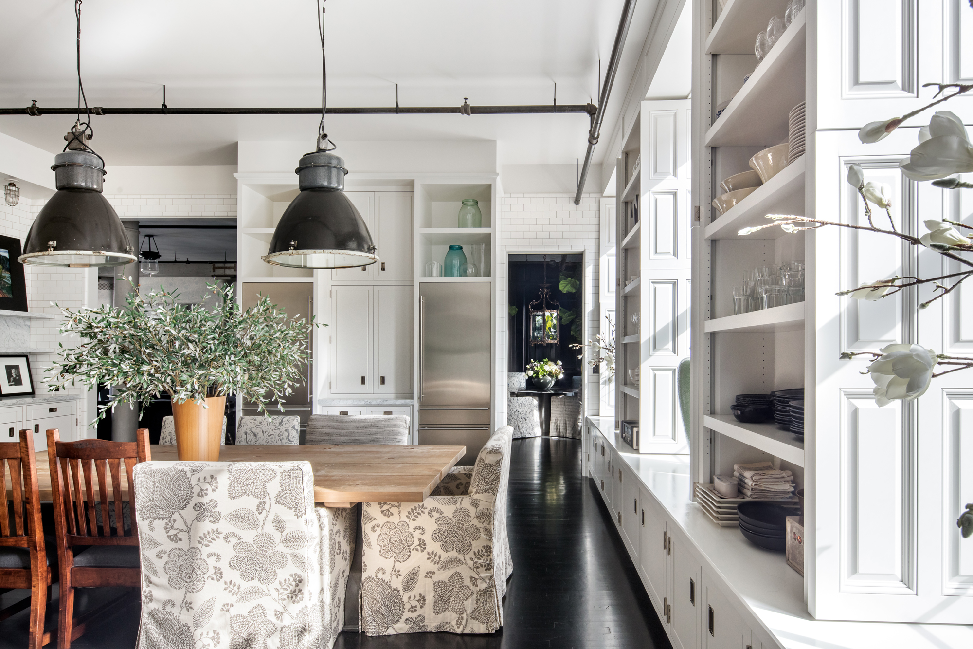 La cuisine est équipée de grandes armoires personnalisées par Fine Woodwork, des étagères en marbre et de grands plan de travail. Le tout est sublimé par un magnifique carrelage métro et des tonnes d’étagères intégrées. On y trouve aussi une grande cuisine Viking avec grill, deux réfrigérateurs en acier inoxydable, et un lave-vaisselle.