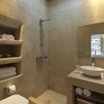 Les couleurs terreuses et les nuances de blanc sont combinées avec des touches soignées de tissus en lin et en coton et des éléments traditionnels conservés. La lumière naturelle qui entre à travers les petites fenêtres apporte de la texture à ces grands espaces blancs et crée une ambiance harmonieuse, voir presque magique. Dans la salle de bains, il est possible d’entendre l’eau s’écouler dans la citerne souterraine conservée à l’identique et utilisée pour la collecte de l’eau de pluie provenant du toit.