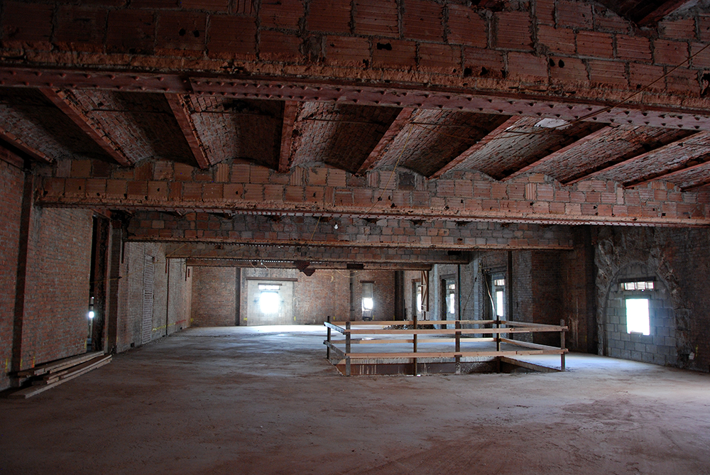 En bas, dans le sous-sol, plusieurs installations de plus grande taille ont remplacé des tas de débris. D’ailleurs, ces photos de l’exposition contrastent avec les photos réalisées par des explorateurs urbains qui avaient réussi à pénétrer dans le bâtiments en 2000.