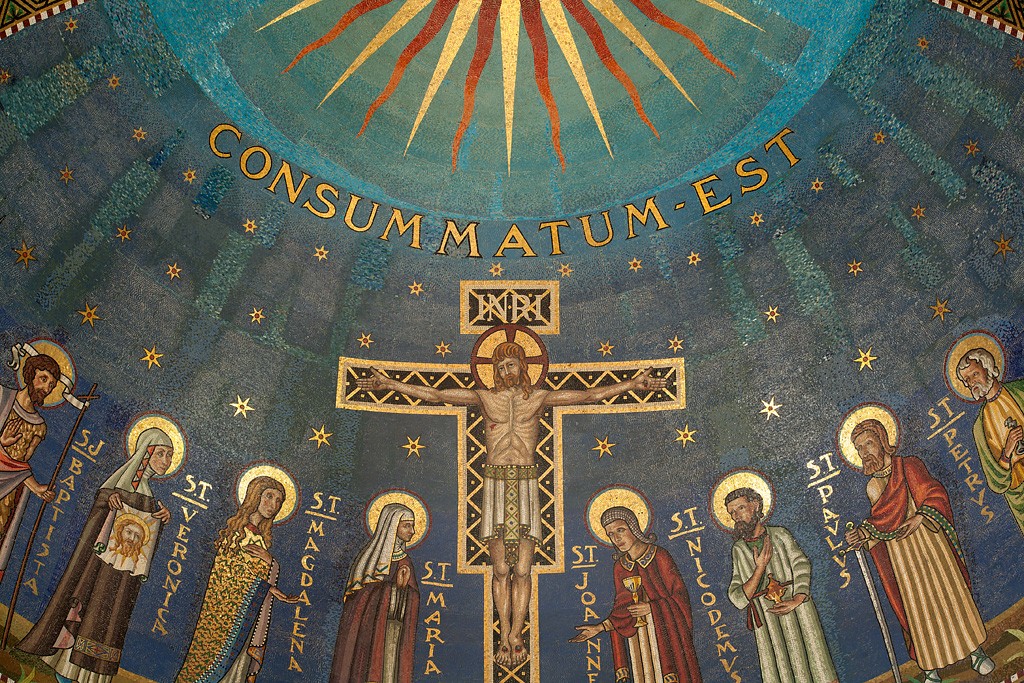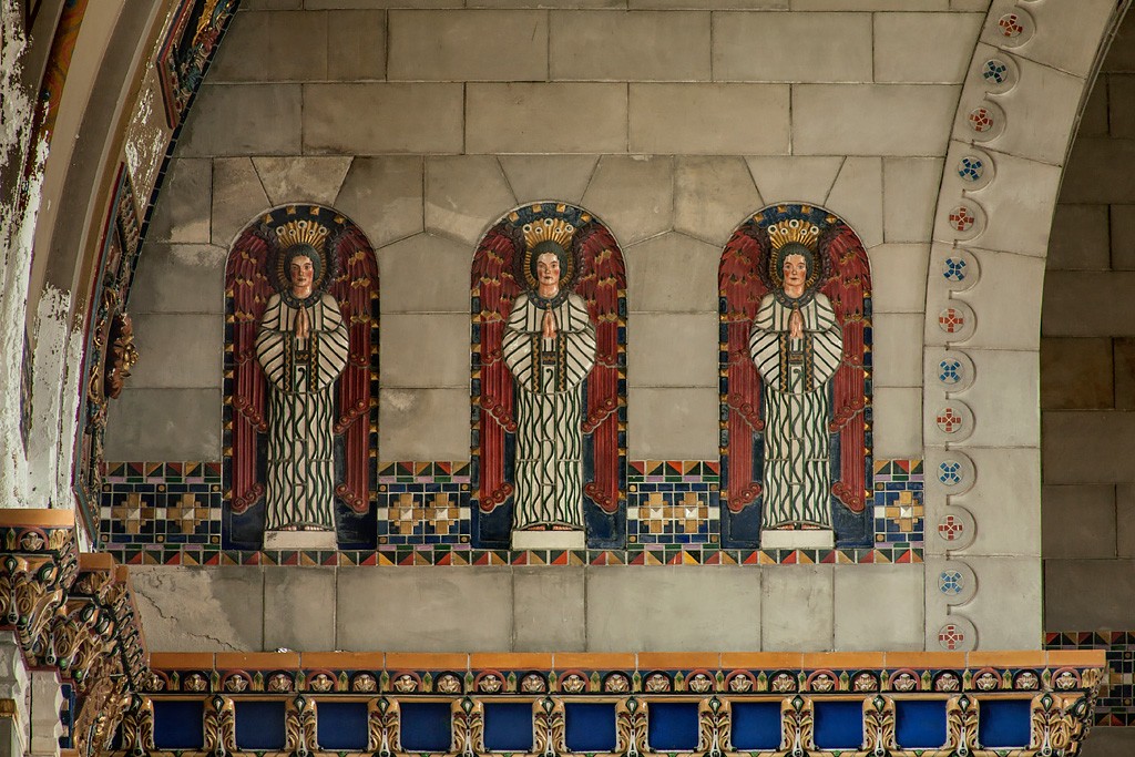 Conçue par Henry D. Dagit, la structure était en pierre. A l’intérieur, des carreaux de faïence et de mosaïques ornaient les quatre coins de l’église. Les vitraux des fenêtre avaient été importés d’Allemagne et achetés chez Zettler. Douze variétés de marbre provenant de France et d’Italie avaient été utilisés pour habiller les piliers, les autels, etc. Un immense massif mosaïque avait également été installé au dessus de l’autel afin de représenter la Crucifixion.