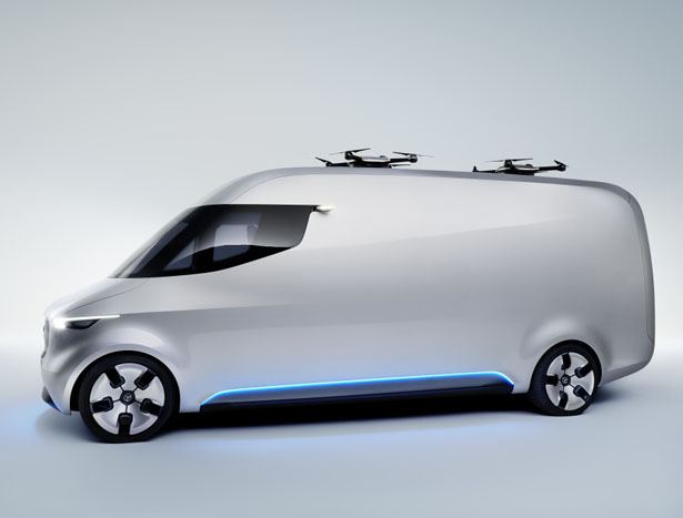 Ce fourgon automatisé pourra être contrôlé à l’aide d’un joystick par un chauffeur livreur. Propulsé par un système d’entraînement électrique de 75kW, cette camionnette peut atteindre les 270 km. Ce système d’entraînement électrique garantit également qu’il sera possible de faire fonctionner le fourgon dans les centre-ville. Pour couronner le tout, il sera pratiquement silencieux. Pour rendre tout cela possible, des algorithmes intelligents ont été créés. Ce sont eux qui contrôlent tout : de la préparation des commandes à leur livraison. Ils seront même en mesure de planifier plus rapidement les livraisons et seront en mesure d’utiliser des drones de livraison. Deux petits drones ont été prévus et sont stationnés sur le tout du van. L’idée est vraiment excellente et pourra s’avérer extrêmement pratique dans les rues où le chauffeur ne peut pas se garer.
